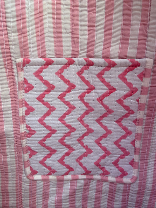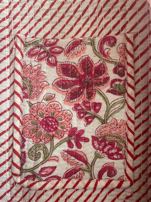 Indian Block Print Quilted Pouch – Handmade Cotton Travel Organizer - The Whitby Pink Range