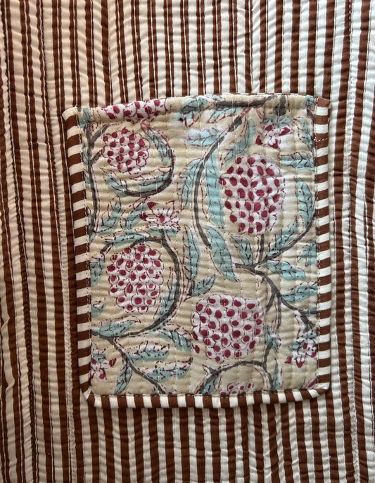 Indian Block Print Quilted Pouch – Handmade Cotton Travel Organizer - The Padstow Range