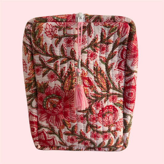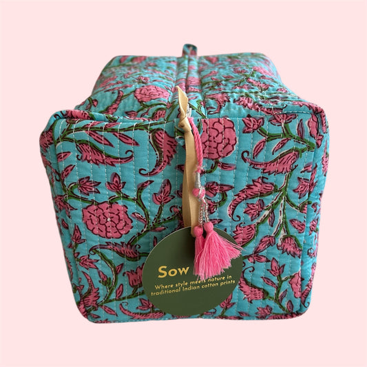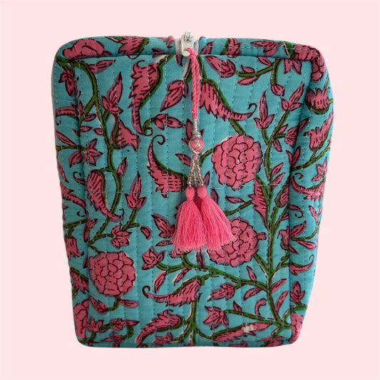 Handmade Indian Block Print Cotton Vanity Bag – Travel Toiletry Pouch - The Weybridge Range