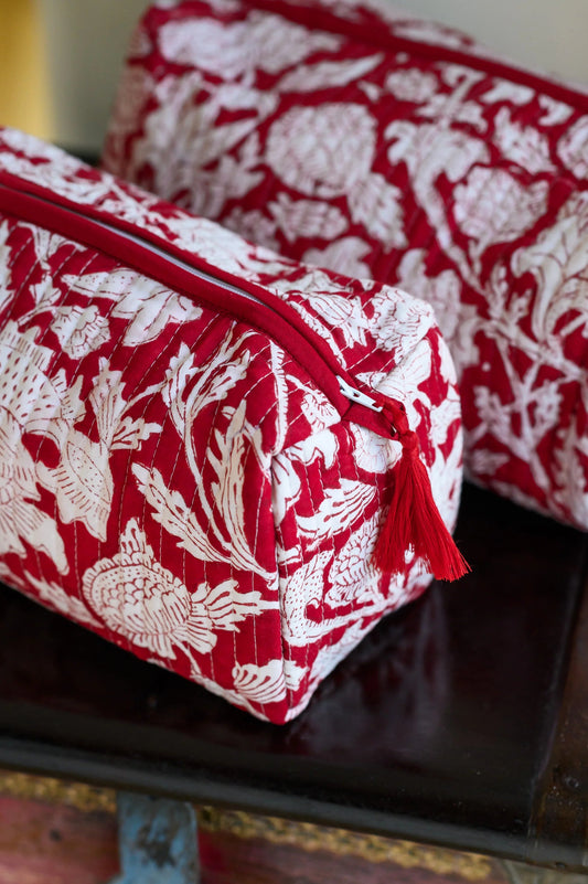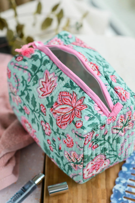 Handmade Indian Block Print Cotton Vanity Bag – Travel Toiletry Pouch - The Exmouth Range