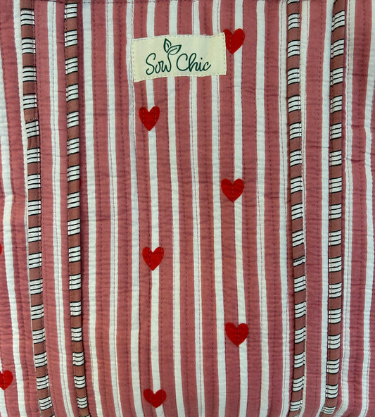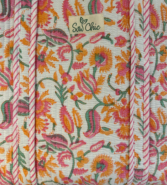 Indian Block Print Quilted Pouch – Handmade Cotton Travel Organizer - The Whitby Pink Range