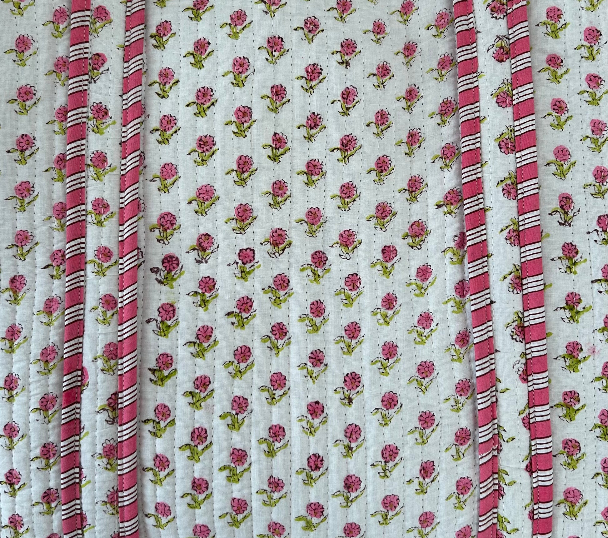 - Hand block printed in Jaipur; lined inside with a matching inside pocket.